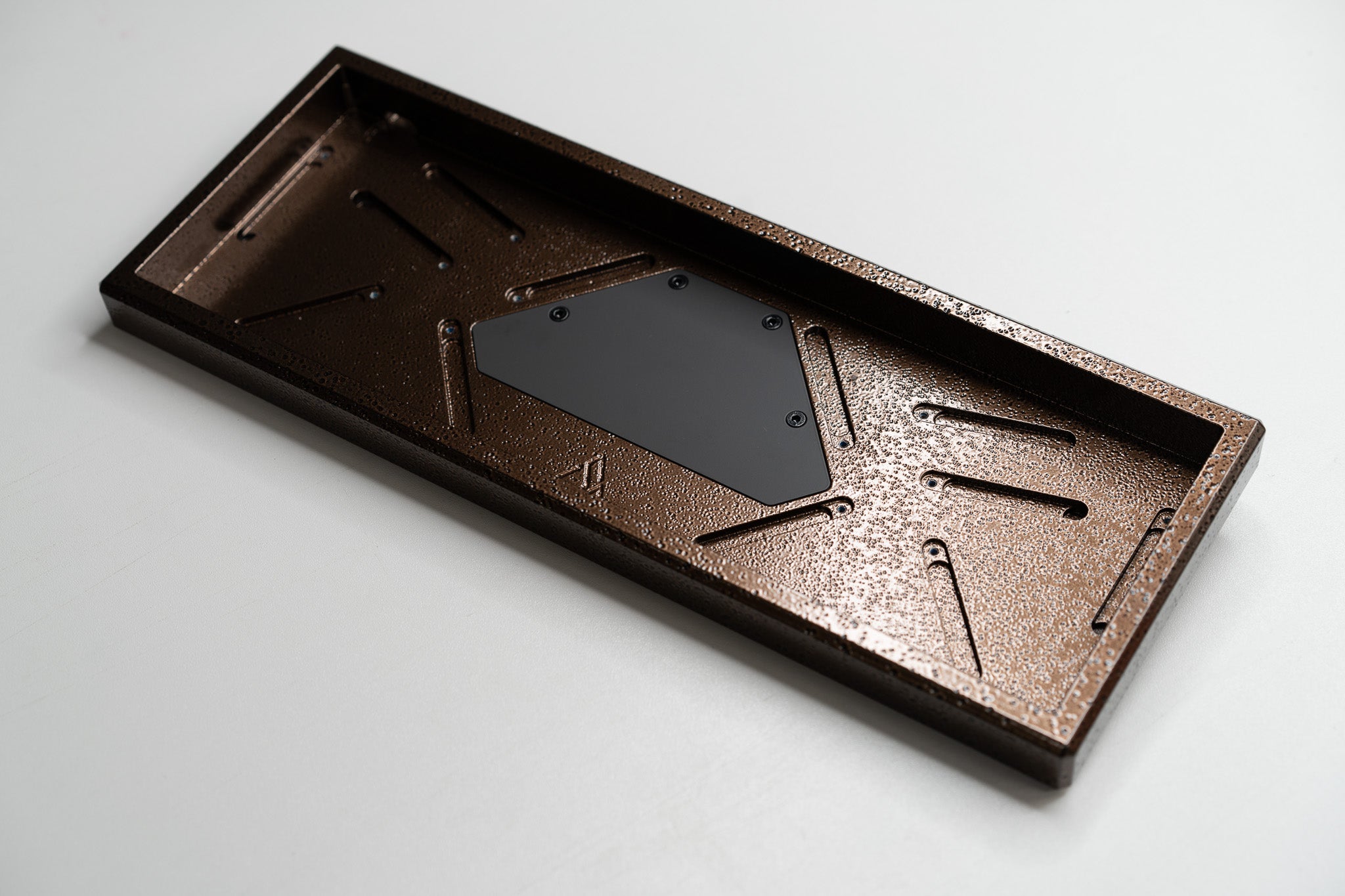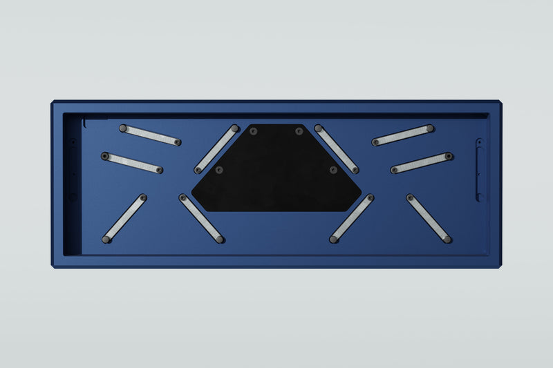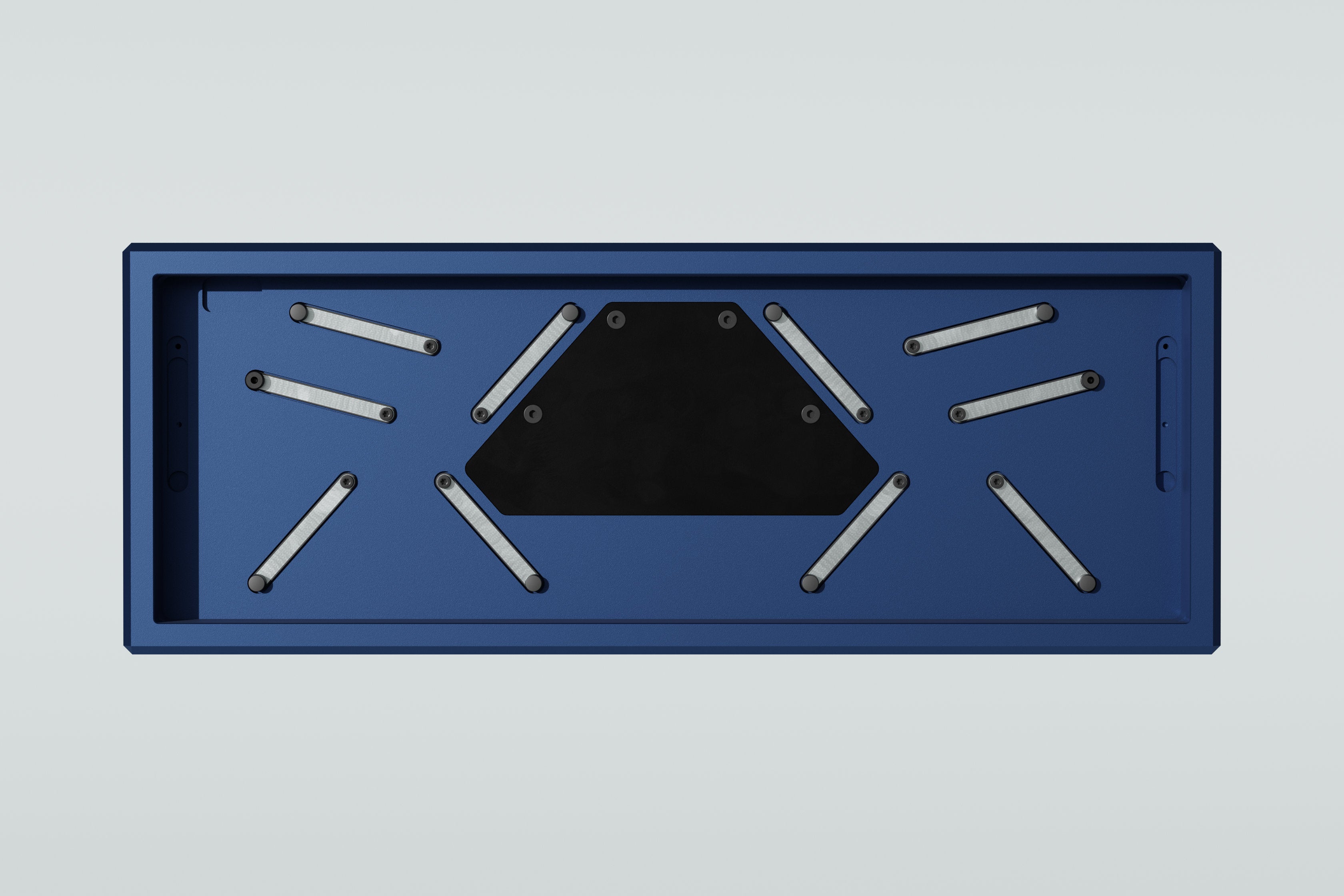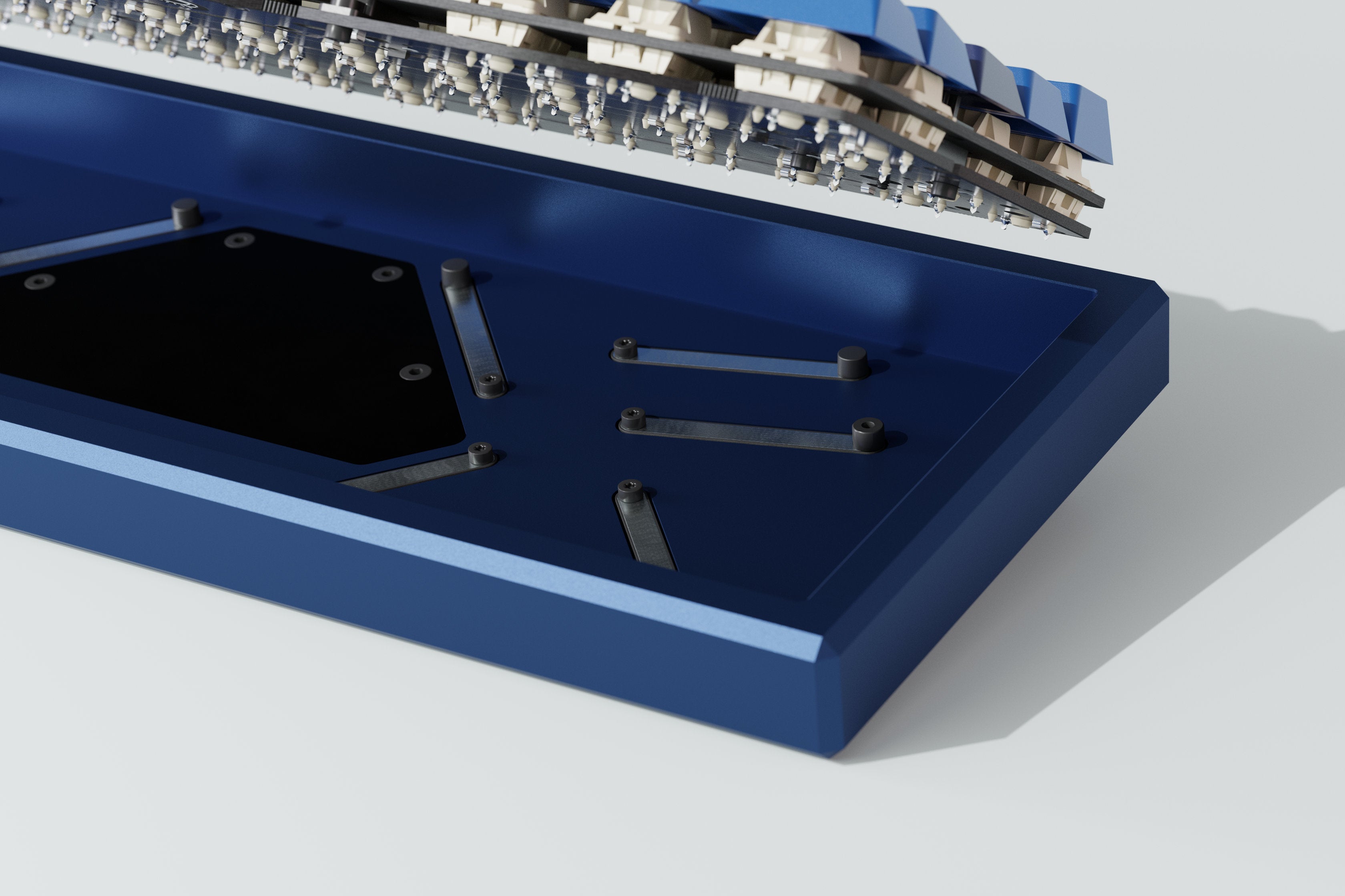 The leaf springs provide exceptional flexibility, allowing the entire plate/PCB subassembly to yield under keystrokes and vibrate in isolation from the case. The result is a typing experience that is soft and vibrant across the whole keyboard.