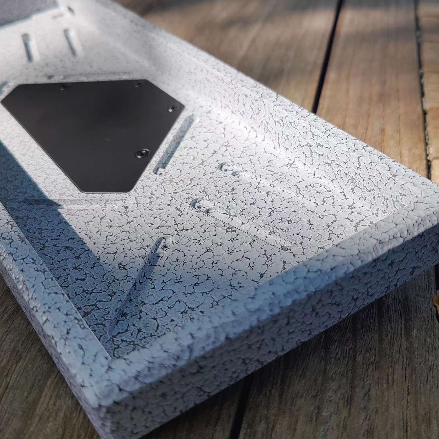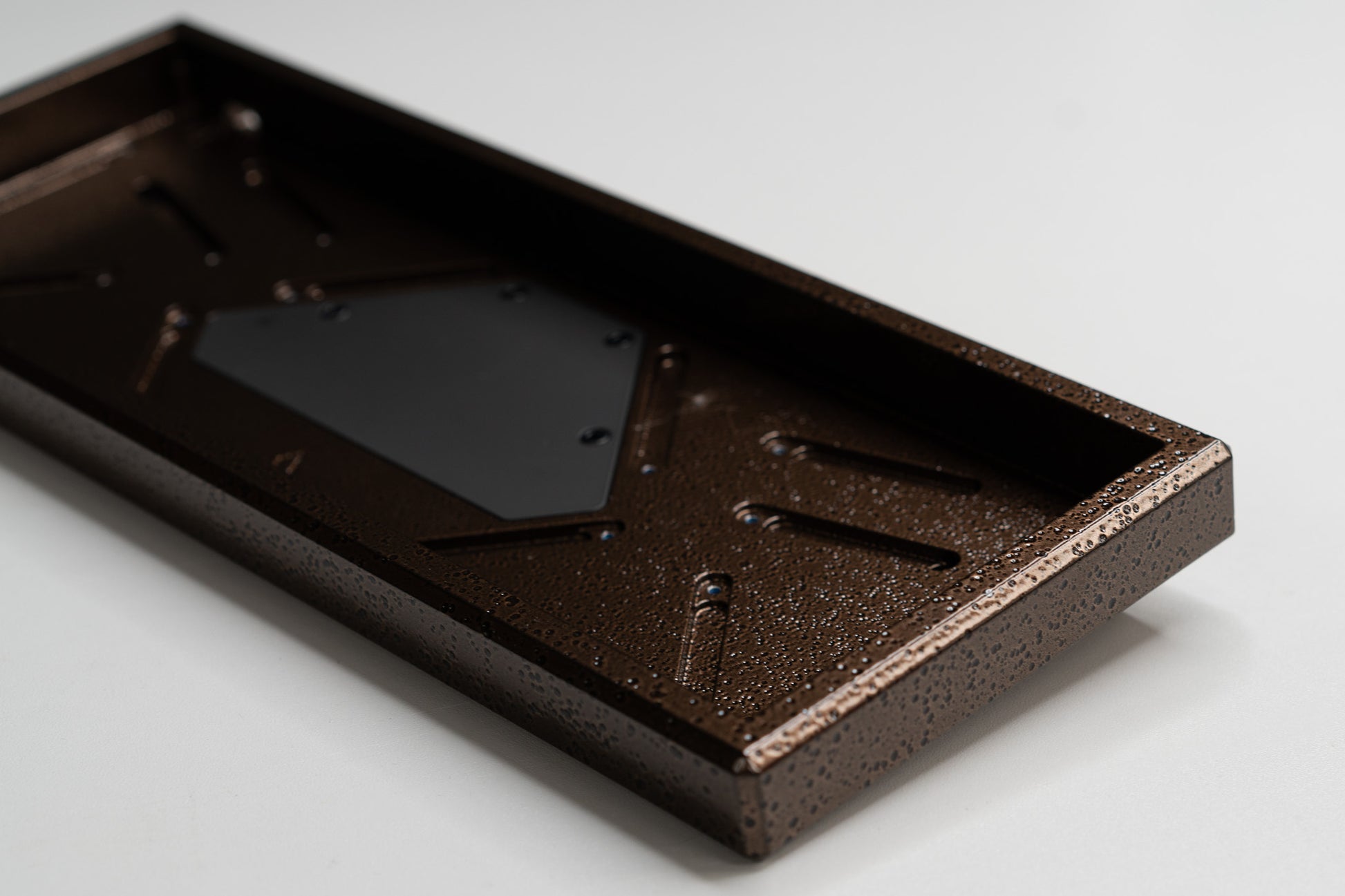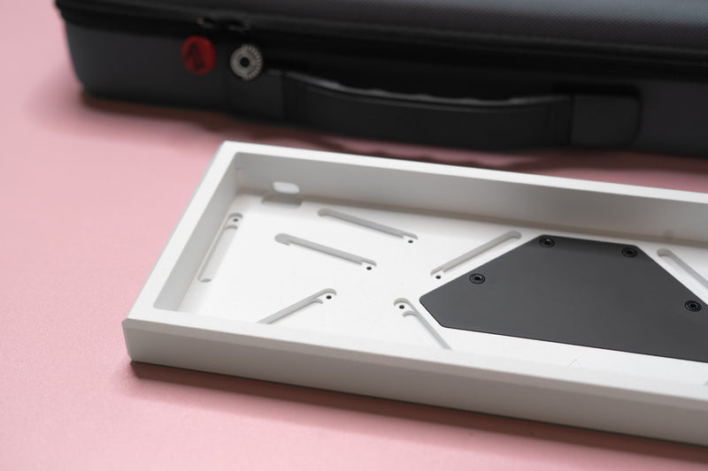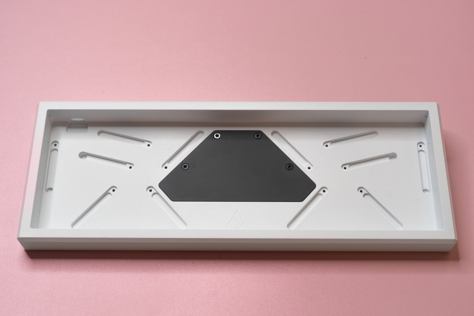 The leaf springs provide exceptional flexibility, allowing the entire plate/PCB subassembly to yield under keystrokes and vibrate in isolation from the case. The result is a typing experience that is soft and vibrant across the whole keyboard.