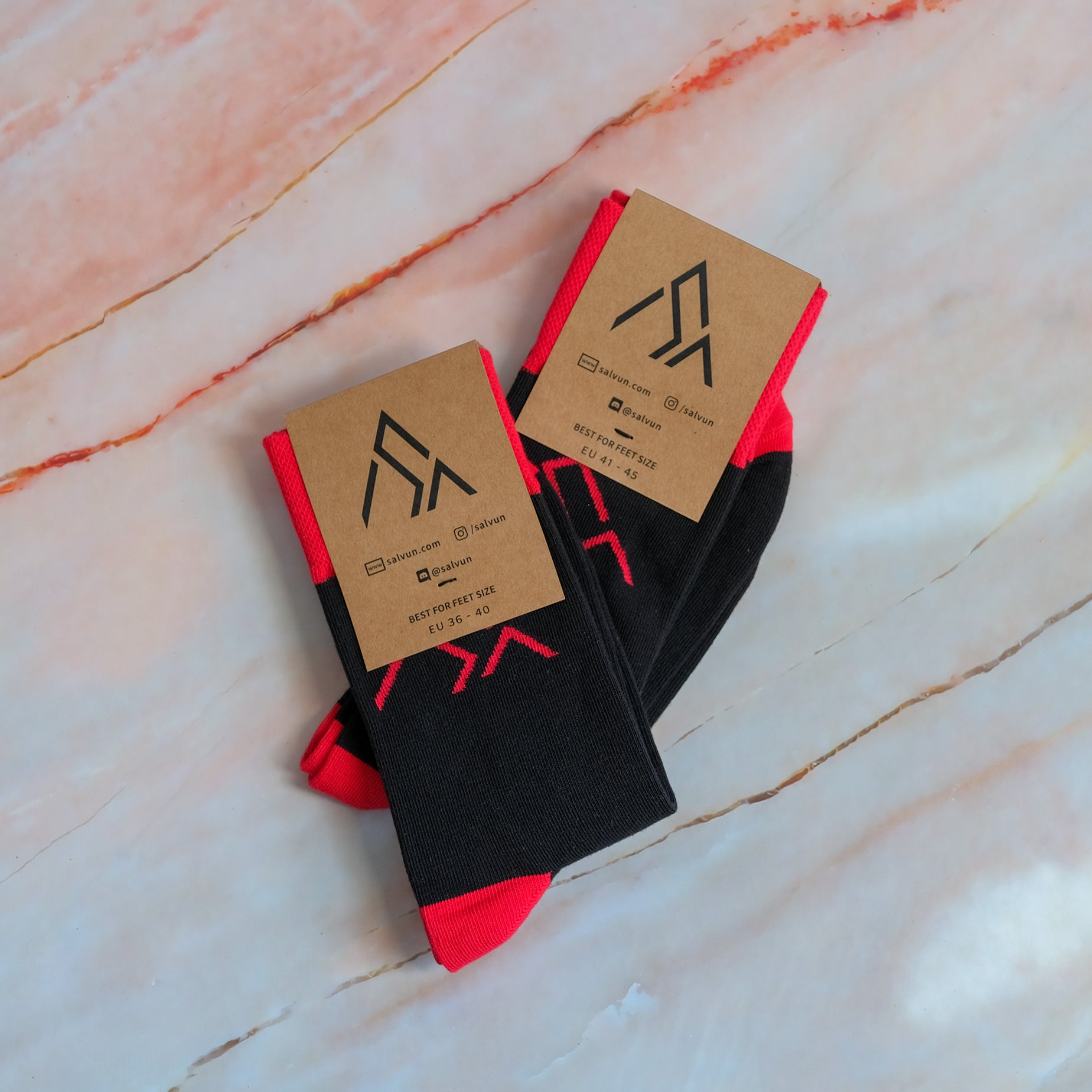 Well, here it is: the second addition the Salvun merch line. Socks! These socks are made locally in the EU. They are the perfect addition to any keyboard and best of all, they actually help your feet not go "BRRRR"... get it? Because it helps fight off the cold and it's a CNC joke? No one? Okay.